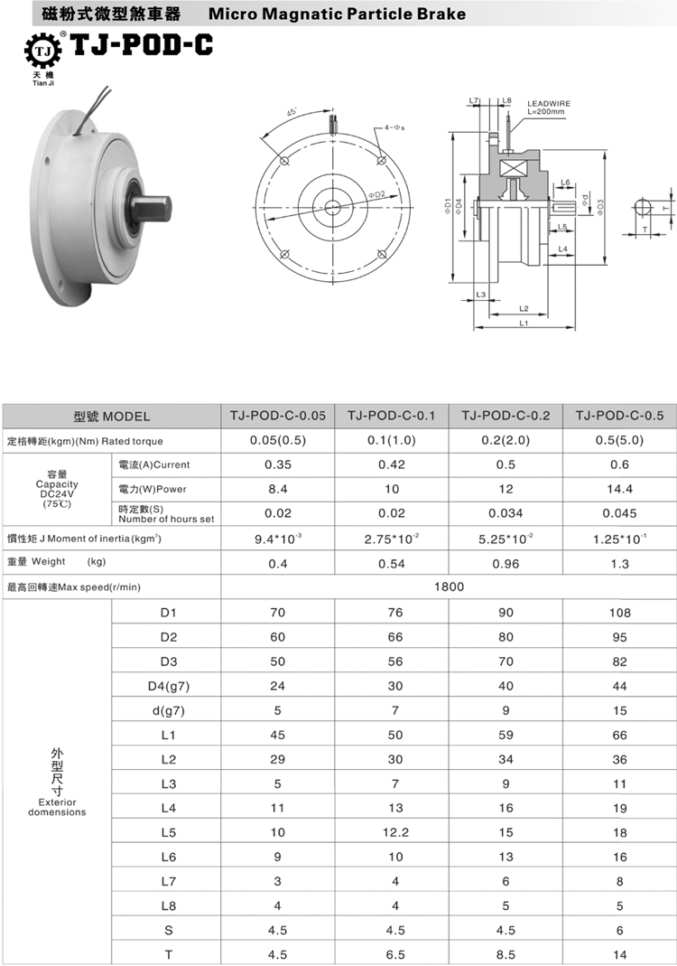 小型磁粉剎車器(微型磁粉制動器)型號選型參數表如下:
