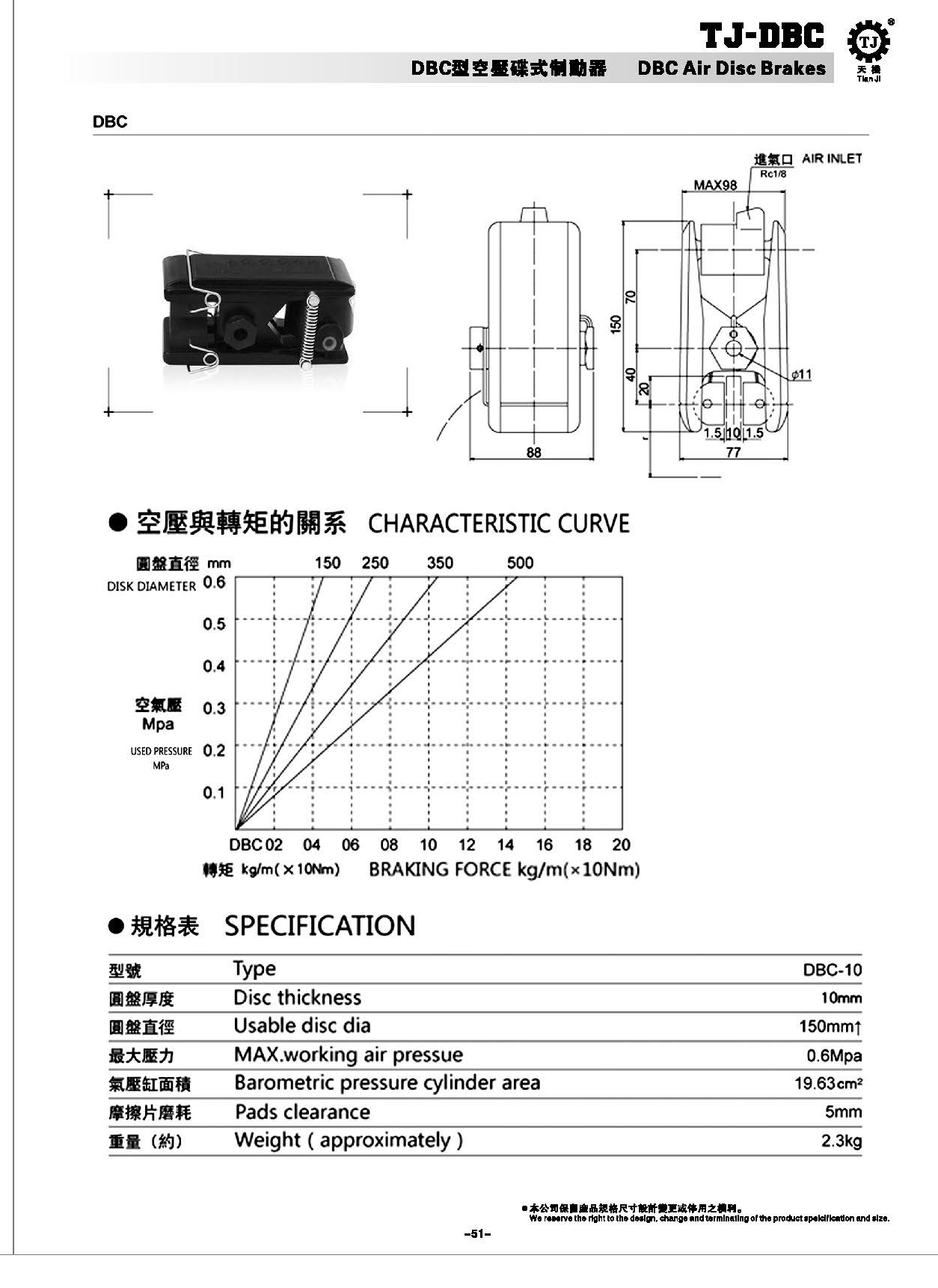 DBC型空壓碟式制動器即為氣動制動器,屬于一種較為有歷史的工作傳動件,其工作主要是靠氣壓。由于是使用氣壓,因此空壓碟式制動器比較環保、耐用、制造成本低。DBC型空壓碟式制動器特點: